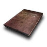 A square bound book, burnt and scarred around the edges by caustic chemicals, and much overlaid with coffee cup circles. The word "Journal" is printed in big gold letters on the front cover.