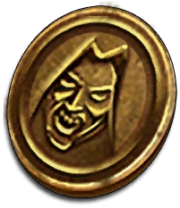 A brass token inscribed with a scowling face and the name "Tarjan."